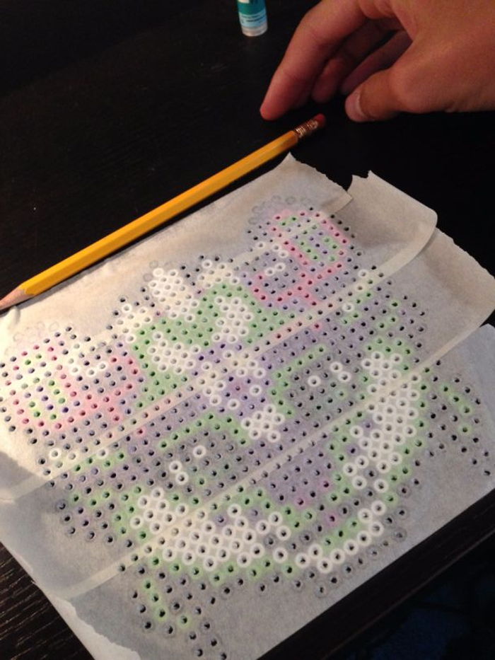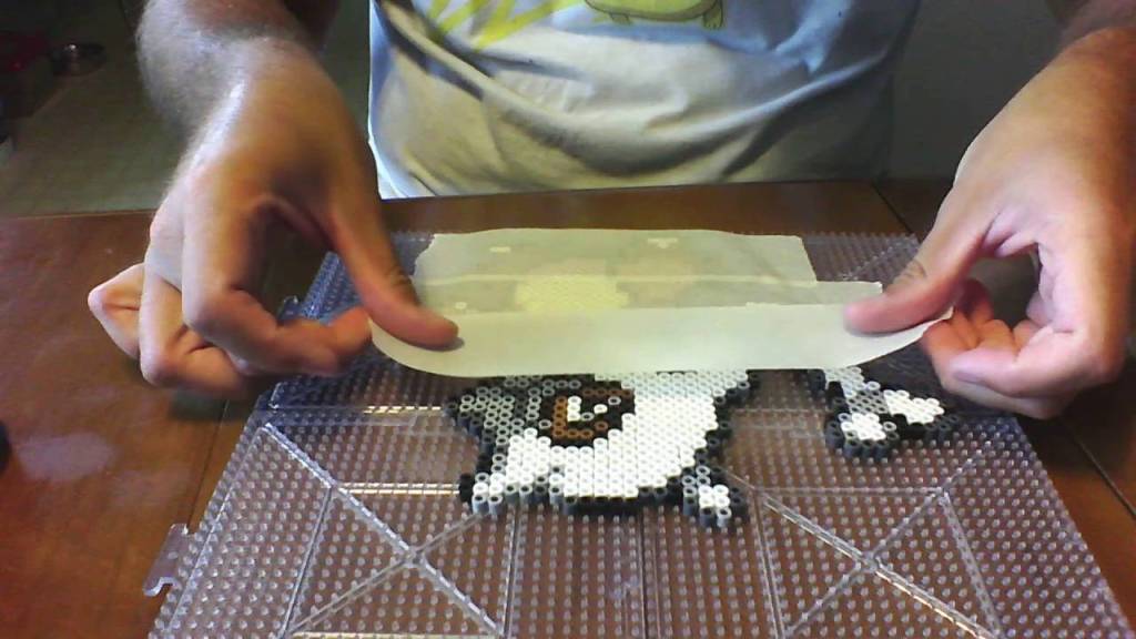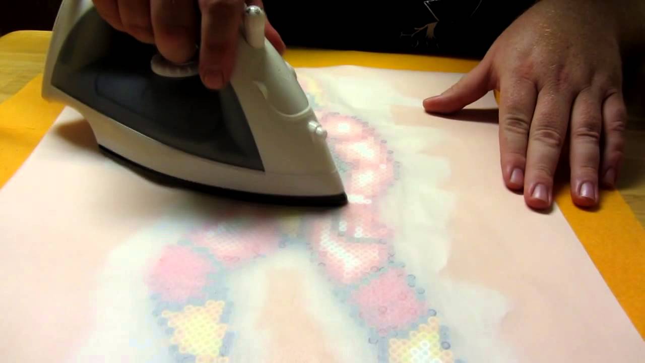 Every instruction manual that comes with perler bead projects will recommend the standard method of ironing. Following the general tips above, you want to make sure you can still see the bead holes through the parchment paper, which should look a little smaller by this point.