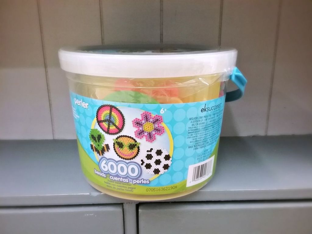 Perler beads can be found in craft stores like Michael’s, but I suggest going to Hobby Lobby as they have a wider selection of assorted colors, buckets, trays, and supplies. For beginners, I recommend buying either a starter bucket or pre-sorted tray.