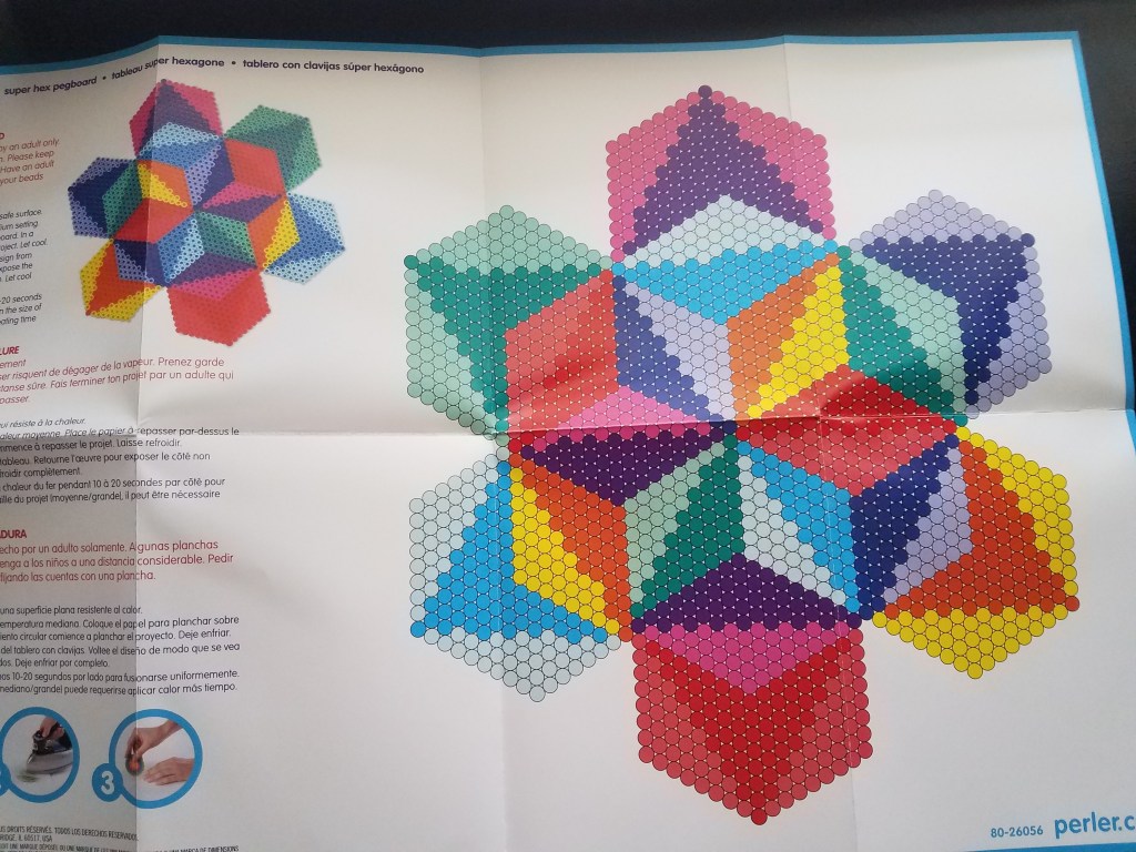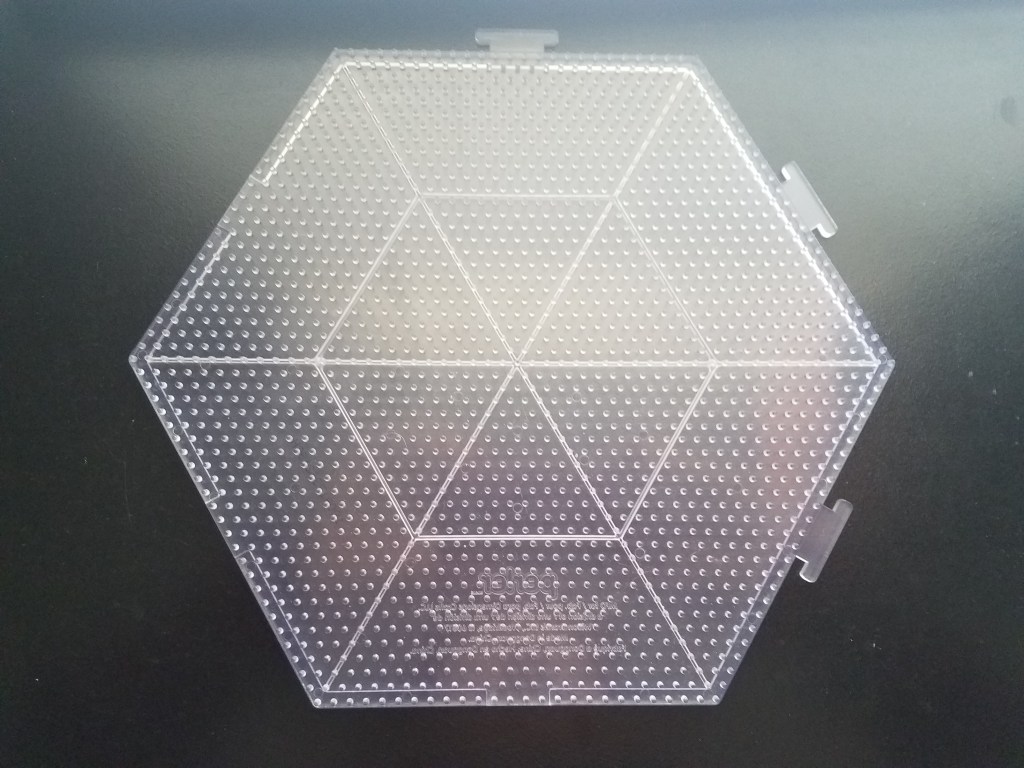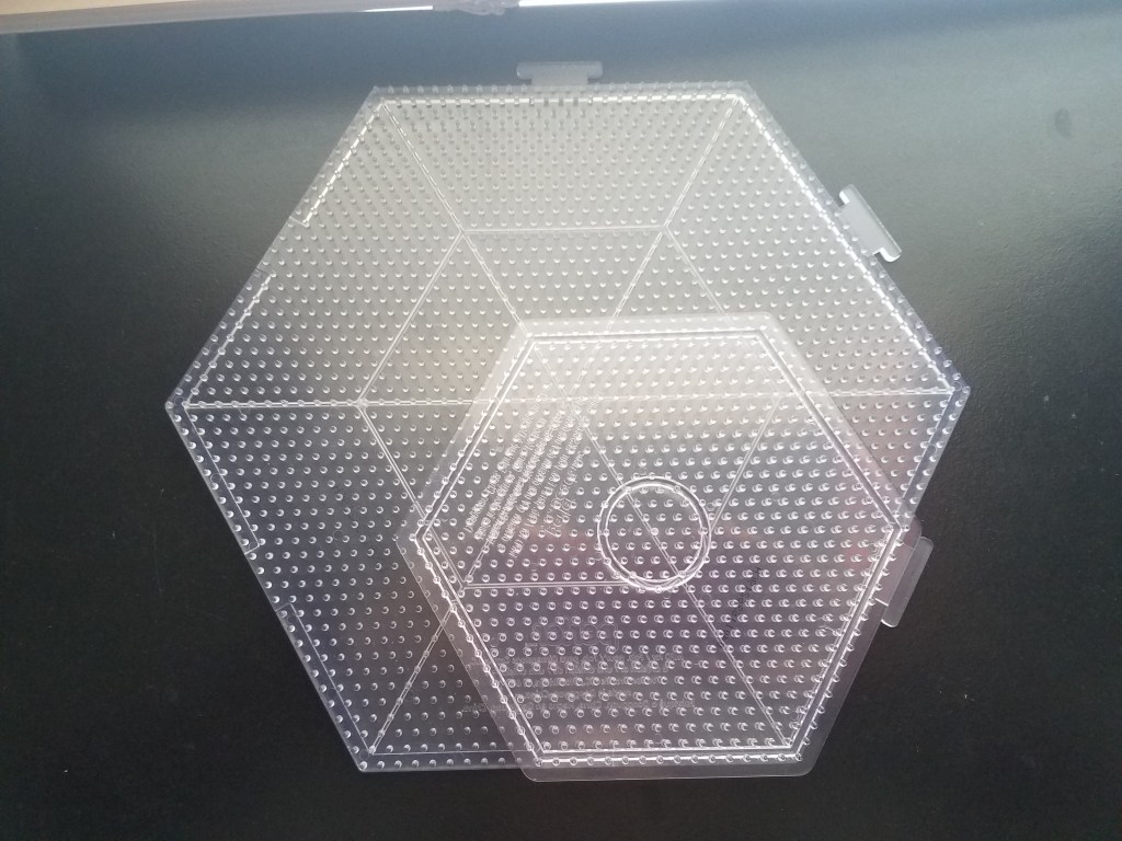 I was thrilled when I discovered this! Especially since it’s a hexagon board with tabs for interlocking, something neither the larger hexagon nor extra large square pegboard has. Unfortunately, Perler discontinued making these and I’m really sad about it. RIP XL hexagon!