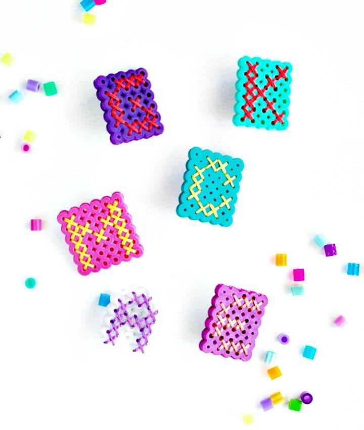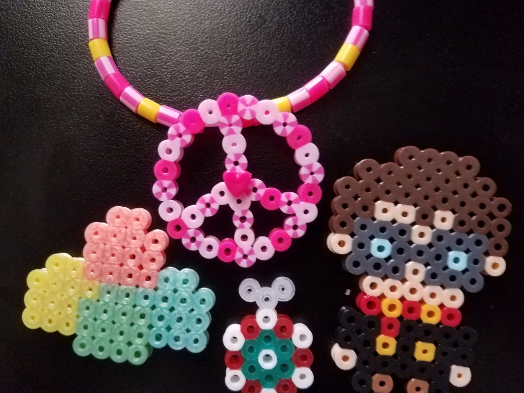 Another relatively harmless way to mess with Perler beads is to string them, particularly into jewelry. I find that mini beads are perfect for earrings, though. Honestly, I didn’t realize just how diverse Perler bead jewelry could be. I especially love that multicolored necklace with the puka shell!