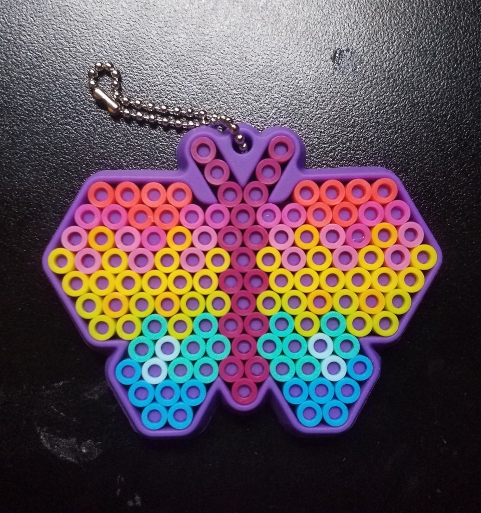 Probably the obvious solution. Stixels function in much the same way that perler bead crafting is supposed to, i.e. placing beads on a pegboard. The only difference is that the “pegboard” is made of silicone with pegs that allow you to slide the beads firmly into place, and trust me when I say that the beads aren’t going anywhere. After making the butterfly you see in the picture, I decided to experiment its durability by chucking it across the room. It landed multiple times on both carpet and tile floors, yet in all those trials it never once lost a single bead. Kind of impressive, actually. That being said, if you so desired to change the pattern, you can still remove the beads using tweezers. All Stixels kits come with a ball chain, which is perfect for turning your creations into key-chains and hanging them on, let’s say, a backpack.