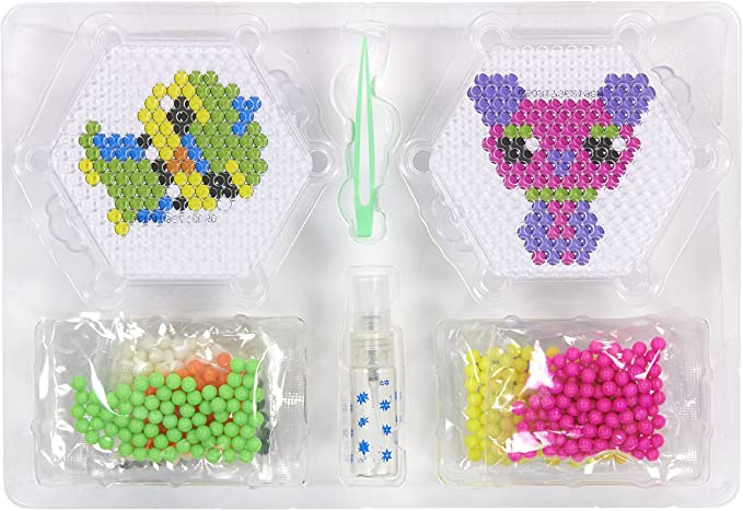 Perler beading….with water! Except not exactly. Instead of placing plastic beads on spiky pegs, you’re putting solid, smooth balls into concave holes. When you’re done making the pattern, you then spray your creation with water. The balls will absorb the water and expand, releasing a glue-like substance that will cause them to stick together. It’s kinda cool. The only downside to this is the wait time. It’s generally recommended that you wait 30-60 min before handling the creation. I’m here to tell ya, I ain’t got the patience for that and I certainly flubbed a couple projects because of it. Not to mention the wait time can be much longer if you completely drowned the balls, and anything involving glue is gonna get messy!